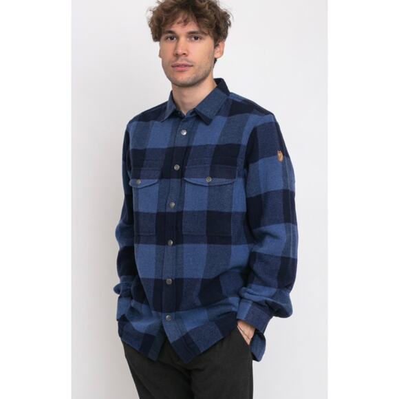 The Fjallraven Canada Shirt delivers a cozy wool-blend flannel in rich blue and black tones. Built for durability and warmth, this versatile piece works as a shirt or lightweight jacket for hiking, camping, or everyday casual wear. Its structured silhouette and rugged check pattern give it a classic outdoor aesthetic. A sought-after Fjallraven staple for fans of functional Scandinavian menswear.
