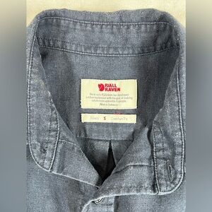 Fjallraven Men’s Small Hemp Blend Lightweight Soft Button Front Navy Shirt EUC