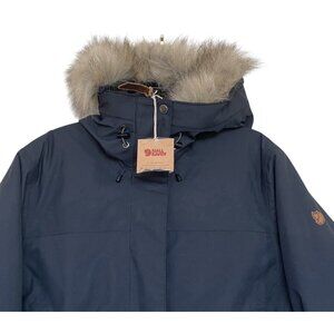 Fjallraven Nuuk Lite Parka Womens Jacket Coat Size Large Blue Hooded Faux Fur