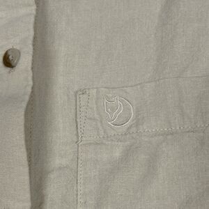 Fjallraven Shirt Womens Large Övik Hemp Beige Button Down Short Sleeve