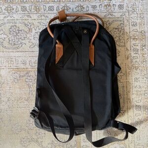Fjällräven Kånken Backpack – Black with Brown Leather Straps
