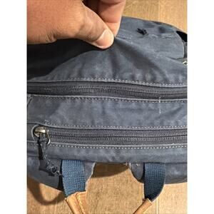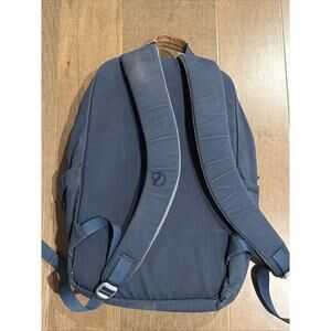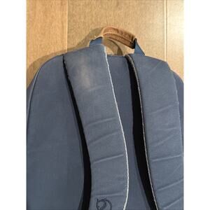 Used Fjällräven Räven 20 backpack in navy blue. Clean, minimalist design with padded laptop sleeve (fits up to 15”), internal organization, and dual side pockets. Made from durable G-1000 HeavyDuty Eco fabric. Discoloration present on exterior fabric—visible fading and wear from use. All zippers, straps, and stitching intact. Interior clean. Ideal for commuting, school, or light travel.