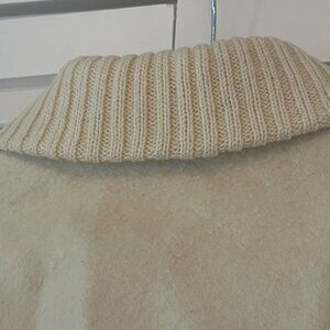 Fjord Fashion women's vintage jacket, size EU 36 (see measurements below, appears to be a US size small). Ribbed trim at collar, hem, and cuffs. Buttondown closure. Side pockets. Scandinavian-inspired. Fabric tag missing, appears to be wool. Cream, great neutral. Gently worn, in acceptable used condition. Slight pilling/wear throughout. No stains.
