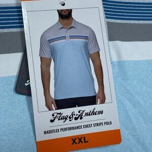 Flag & Anthem Madeflex Chest Stripe Polo XXL Light Blue Gray Shirt a0086