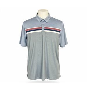 Flag & Anthem Madeflex Performance Polo Short Sleeve Blue Stripe Golf Shirt XXL