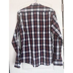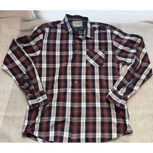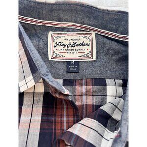 Flag & Anthem Mens Plaid Shirt Button Up Medium Navy Red White Long Slv