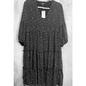 Flag & Anthem Womens V-Neck Ruffle Tears 3/4 Sleeves Floral Midi Dress Size M