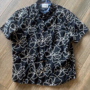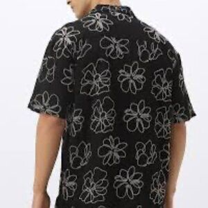 The Flag and Anthem men's short sleeve, all cotton, embroidered casual shirt in size XL is a stylish and comfortable option for casual occasions. Featuring a floral pattern, button closure, and collared neckline, this shirt is perfect for summer, fall, and spring. The black color and ivory embroidered accents add a touch of flair to the classic design, making it a versatile addition to any wardrobe. With a regular fit and machine washable fabric, this shirt is both practical and fashionable for everyday wear.