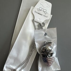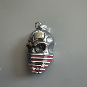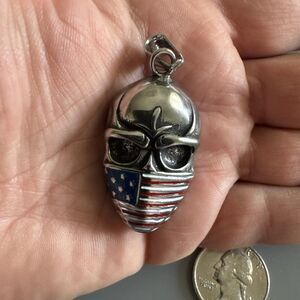Flag Face Bandana Skull Pendant Stainless Steel on Cuban Link Chain U.S.A.