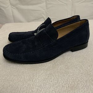 Flag Ltd Napa Glove Perforated Navy Suede Loafers Mens 10 Slip On New
