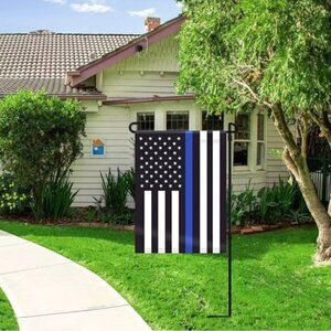 Flag US Thin Blue Line Thin Patriotic Yard Lawn Garden Outdoor Indoor Blue Black