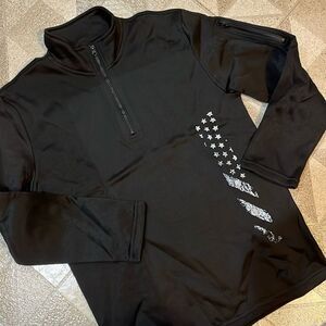 Flag design men’s zip neck black pullover zip up neck open hem size Large