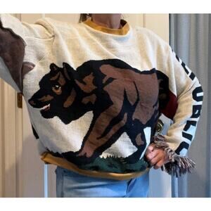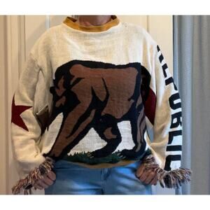 Crewneck pullover created from tapestry blanket - California Republic Flag motif