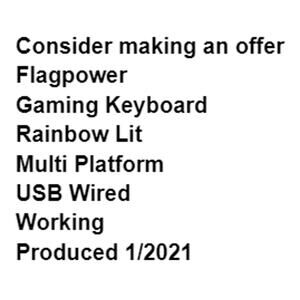 Flagpower Gaming Keyboard Rainbow Lit Multi Platform USB Wired Working Produced 1/2021