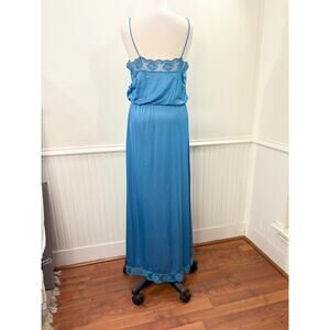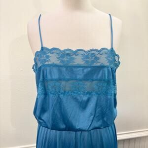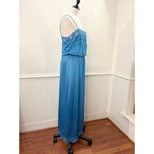 Flair Size M Nightgown Vintage Teal Blue Lace Trim Blouson Maxi Length USA Made