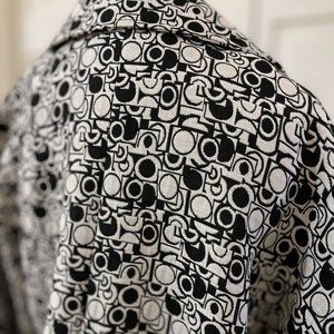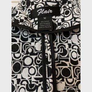 Flair Tunic Jacket M Womens Open Front Black White 3/4 Sleeve Knit Textured