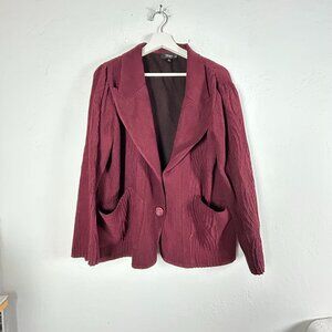 Flair Womens Burgundy Textured Single-Button Blazer Jacket Medium Pockets Casual