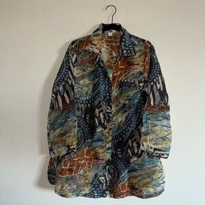 Flair vintage Button Down V-Neck long Sleeve Shirt Top Blouse Size L