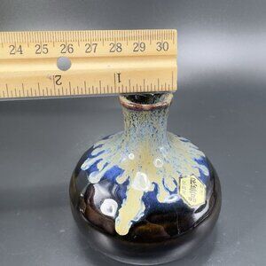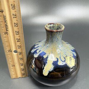 Flambé Pottery Blue Green Brown Pottery Bud Vase Bottle Bud Vase Japan Vintage