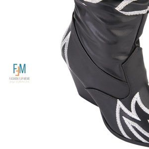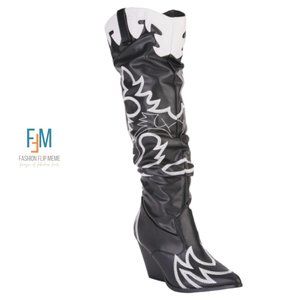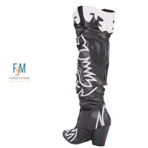Flame Stitch Chunky Heel Western-Style Pull-On Tall Boot (Women's 41)