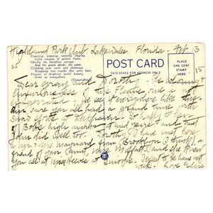 Charming vintage postcard showcasing the vibrant "Flame Vine" (Bignonia Venusta) in Florida. Features handwritten correspondence and nostalgic artistry. A timeless collectible for postcard enthusiasts.