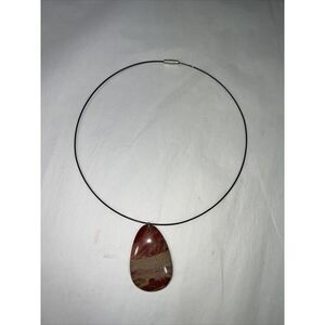 Flame Jasper Pendent On 18” Cord Statement Necklace Natural Bohemian Collar