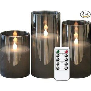 Flameless LED Candles Set of 3 Gray Glass Remote Timer Real Wax Home Decor