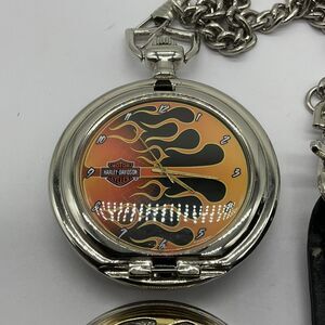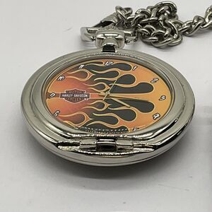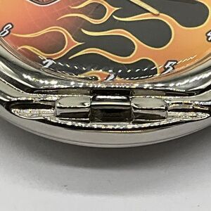 This pocket watch is a must-have for any Harley-Davidson collector. The Flames design is eye-catching and the attention to detail is impressive. It was made by Franklin Mint and is a great addition to any watch collection. The watch is broken and the case hinge is an issue, but please evaluate this carefully before determining if this is a deal-breaker. This watch is perfect for those who love collecting unique and beautiful items.