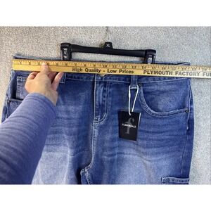 Flamingals Jeans Women's 3XL (37x31) Blue Denim Baggy Flap Pockets Stretch NEW
