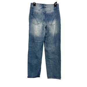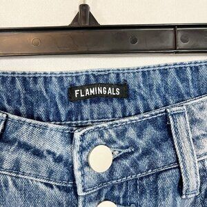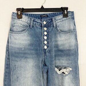 Flamingals Light Wash Distressed Denim High Rise Wide Leg Jeans Button Fly SMALL