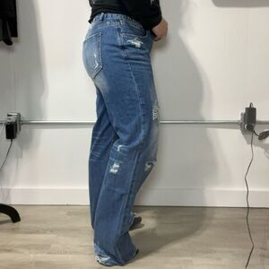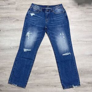 Flamingals Ripped Distressed Raw Hem Straight Leg Jeans Women’s Blue Size L 6-8