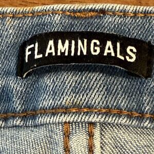 Flamingals Wide Leg Jeans Double Breasted Stitch Detail Flare Jeans Size Large