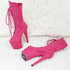 Flamingo 1051FS 8" Heel Mid Calf Platform Boots Hot Pink