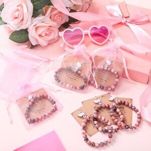 Features: This set includes 12 elastic pink agate flamingo bracelets, each with a stylish flamingo charm that symbolizes strength and beauty. Comes with 12 gift cards and 12 pink mesh bags, perfect for sharing or gifting. The pink agate adds an elegant vibe, and the flamingo design offers a delicate yet meaningful touch.