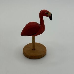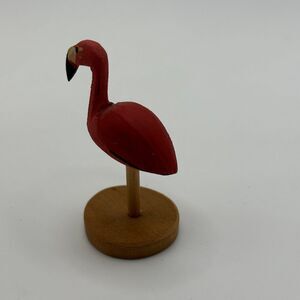 Flamingo Bird Wooden Figurine Hand Carved Signed Kw Burt