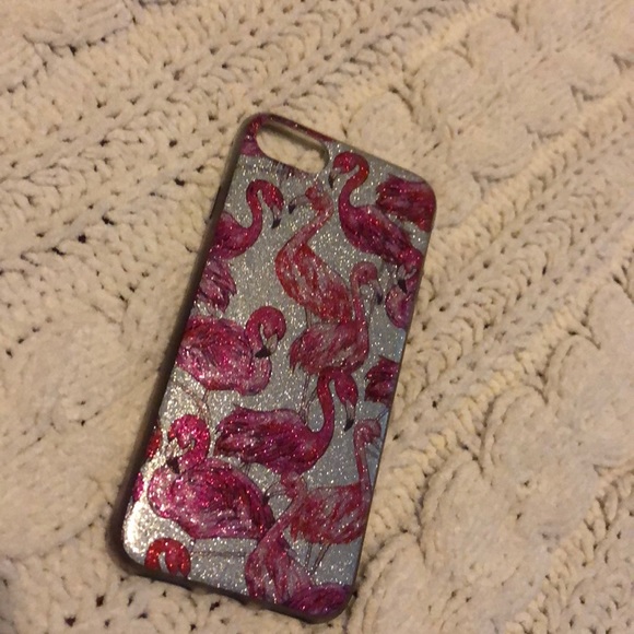 It is a flamingo case with pink glitter and silver. IPhone 6