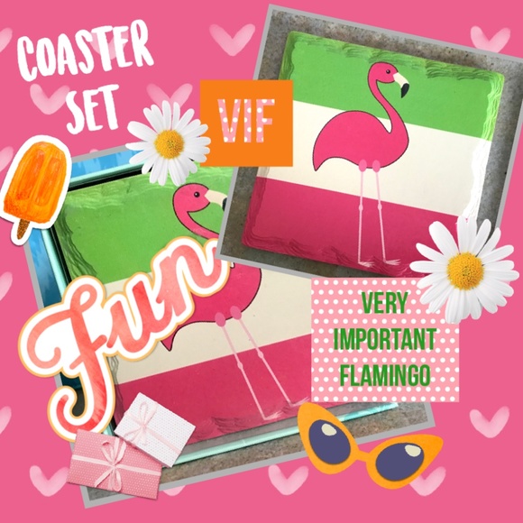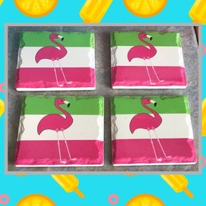 Set of 4 slate and cork backed coasters with darling Flamingo's! All 4 coasters have same design.