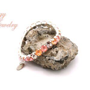 Flamingo Glow Peach and Pink Crystal Stretch Bracelet Made with Austrian Crystal