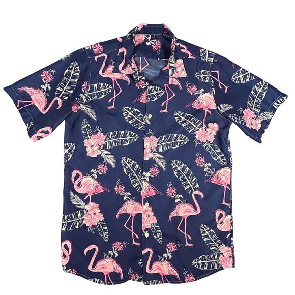Flamingo Hawaiian Shirt Mens Medium Tropical Floral Button Up Party Summer Casua