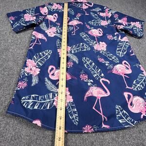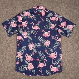 Flamingo Hawaiian Shirt Mens Medium Blue Pink Tropical Floral Button Up Party Summer Hawaiian