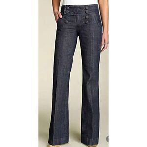 Flamingo Jeans Double Breasted Pocket Detail Fabric Buttons Flare Mid Rise