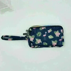 Wristlet features 3 zippered compartments made of durable polyester material. With a handle strap that fits small to medium wrists, this versatile wristlet can store makeup, accessories, or even function as a wallet for on-the-go convenience.