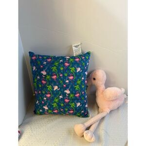 Flamingo pillow 16x15" small toss pillow bonus stuffed flamingo. 19" stuffed light pink flamingo. new.