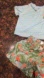 Adorable swim set with a flamingo print. Light blue top with matching shorts featuring vibrant flamingos and tropical leaves.