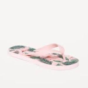 NWT flamingo flip flops. Pink old navy flip flops with cute flamingo and palm leaves pattern. Partially plant based. In unopened packaging. *Reasonable* offers only please.