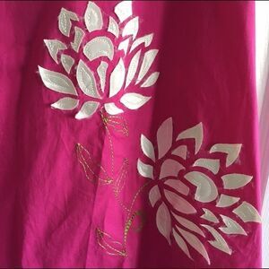 Barely worn dress in hot pink. One little mark on bottom that can probably be taken off when washed. 97% cotton/3% spandex. Zipper closure in the back. White flower detail in front (looks like it is falling apart but that is the look). Perfect for summer. Size S. Measures 31” from top to bottom and put to pit approx 13”.