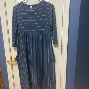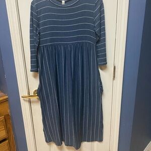 Flamingo Urban Blue 3/4 Length Sleeve Round Neckline Cotton Midi Dress Size S.