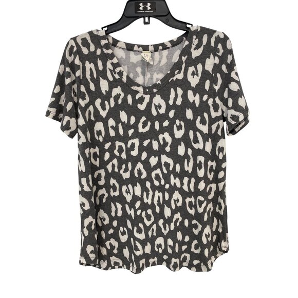 Flamingo V Neck Leopard Print T Shirt Size Medium Short Sleeve Animal Print Gray