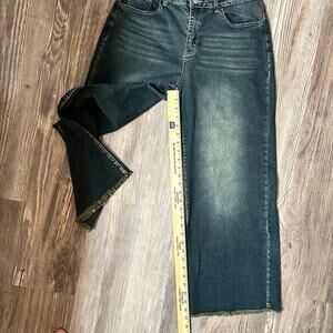 Flamingo Women's L Dark Wash Straight Leg Jeans Mid Waist Raw Hem