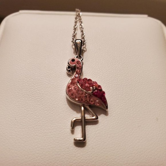 Pink crystal flamingo necklace. Flamingo charm approx 1 in Chain is 18 in long